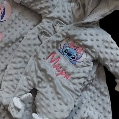 Combinaison pilote pour bébé en fourrure minky molletonnée (fourrure cloquée), intérieur et oreilles sur la capuche, bas des manches et oreilles sur les pieds en jersey coton blanc à pois , molleton assez fin, doublure corps en jersey blanc, pressions en arrondi devant jusqu’au bas d’un pied.