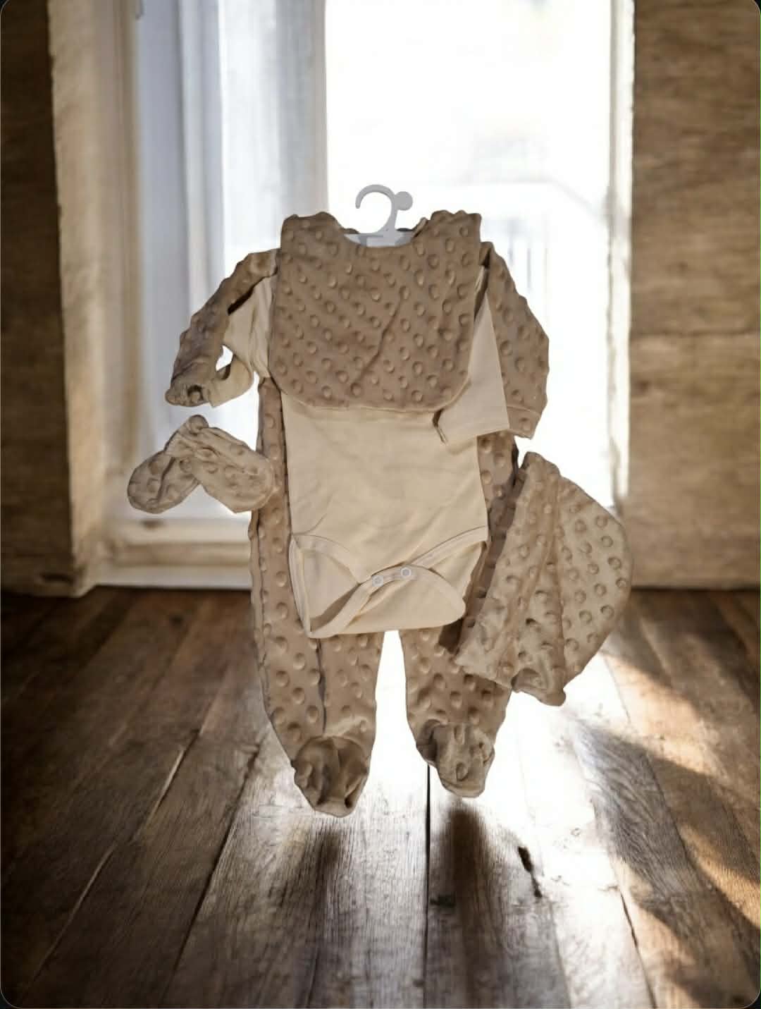 Ensemble 5 pièces naissances minky marron