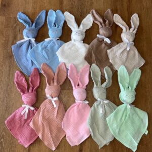 doudou lapin vert d’eau